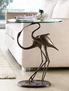 COURTING CRANES GLASS TOP SIDE TABLE - 26.5"H 22"W 22"D - ALUMINUM & GLASS - 20 LBS