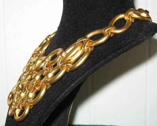 AMAZING COUTURE MATTE GOLD HEAVY CHAIN LINK BIB NECKLACE