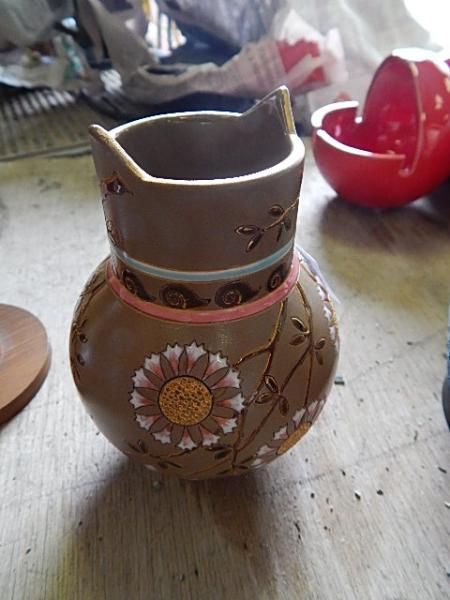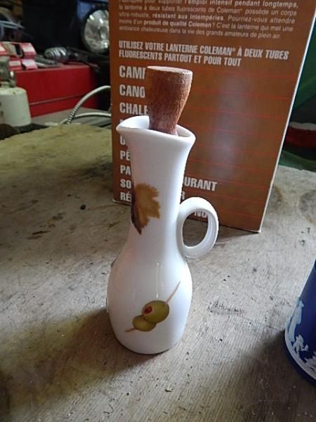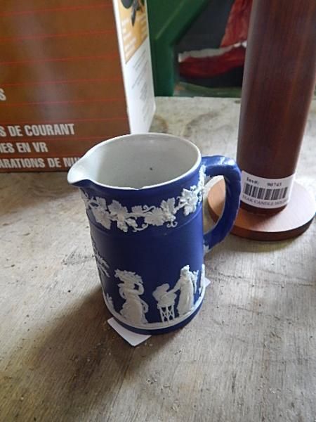 COVERED DISH - ROYAL WORCESTER, CLOI BROWN VASE DARK BLUE WEDGEWOOD PITCHER- as-is, VINEGAR BOTTLE - ROYAL WORCESTER = 4 PC TOTAL