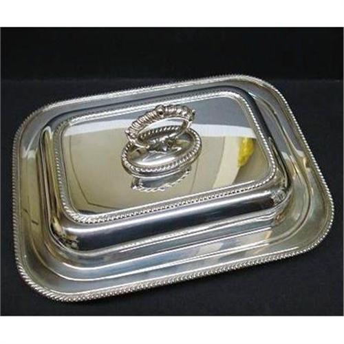 <tr><td>Title:COVERED ENTREE SILVER SERVING DISH</td></tr>