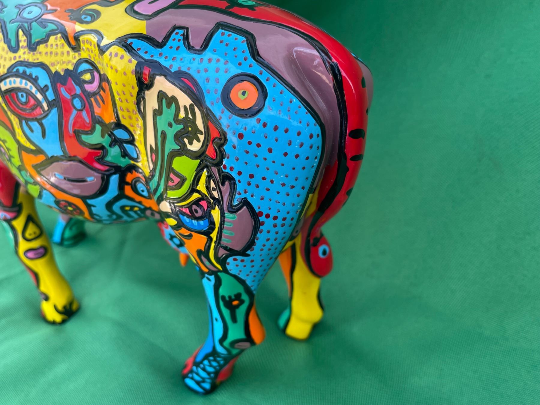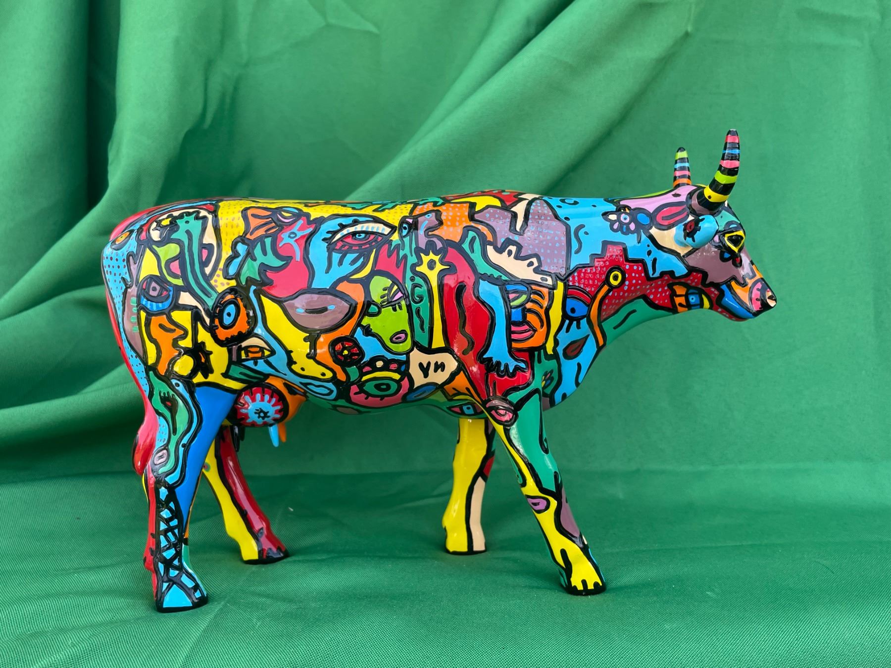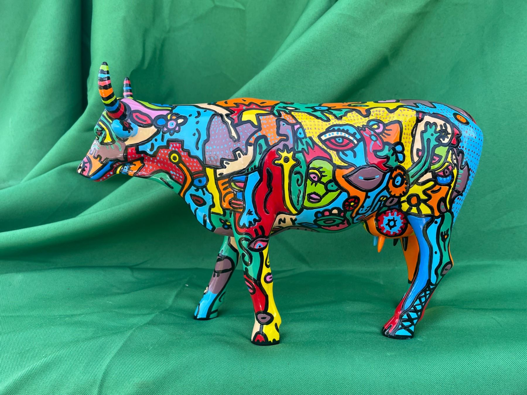 Decorative figurine that is perfect reproductions of the Moo York cow in the  CowParade (travelling public art show)  https://cowparade.com/