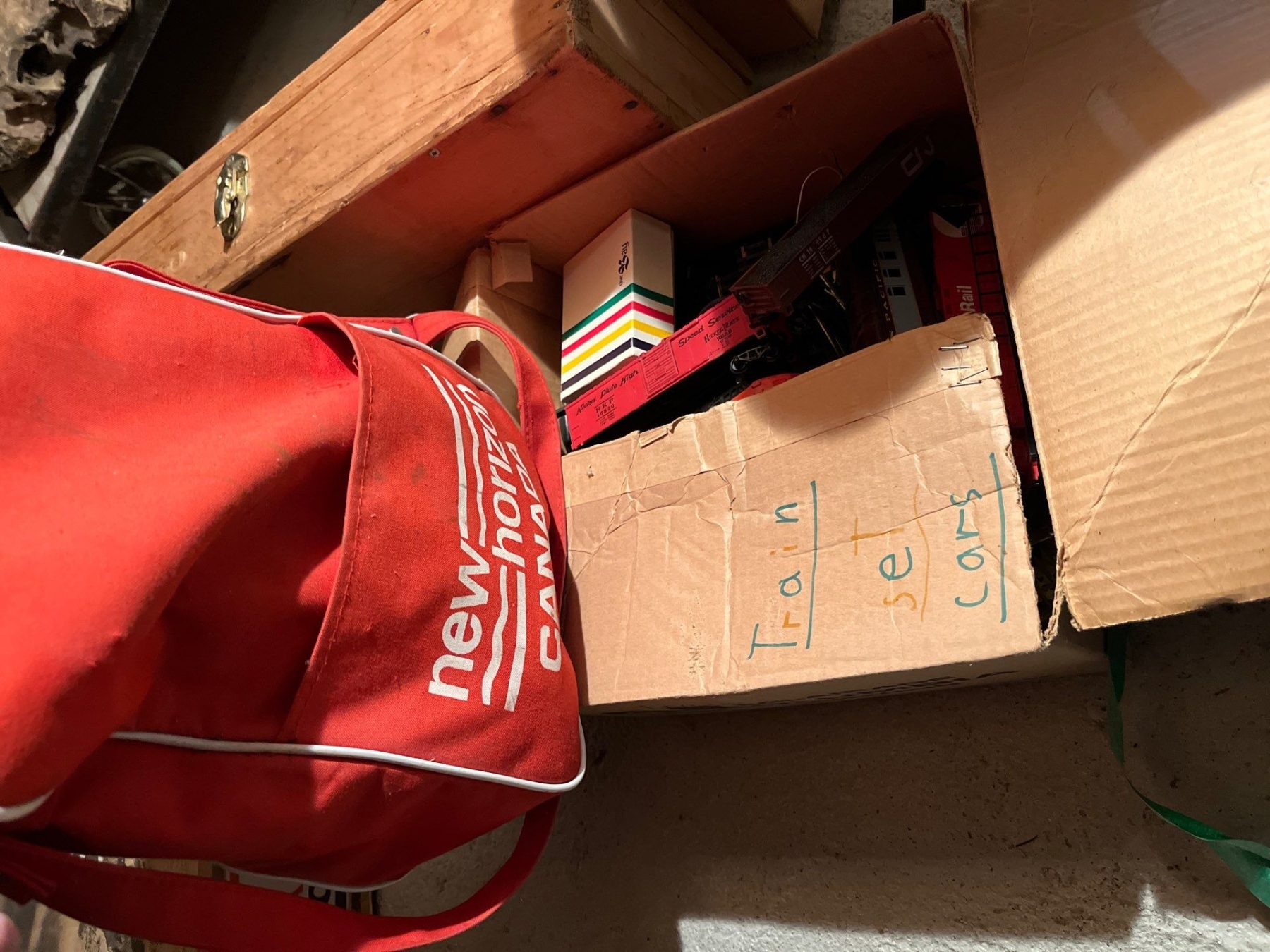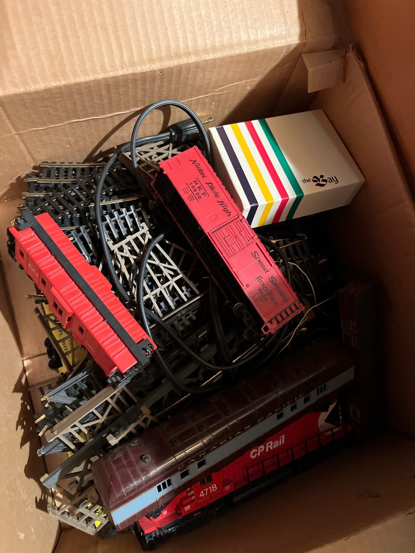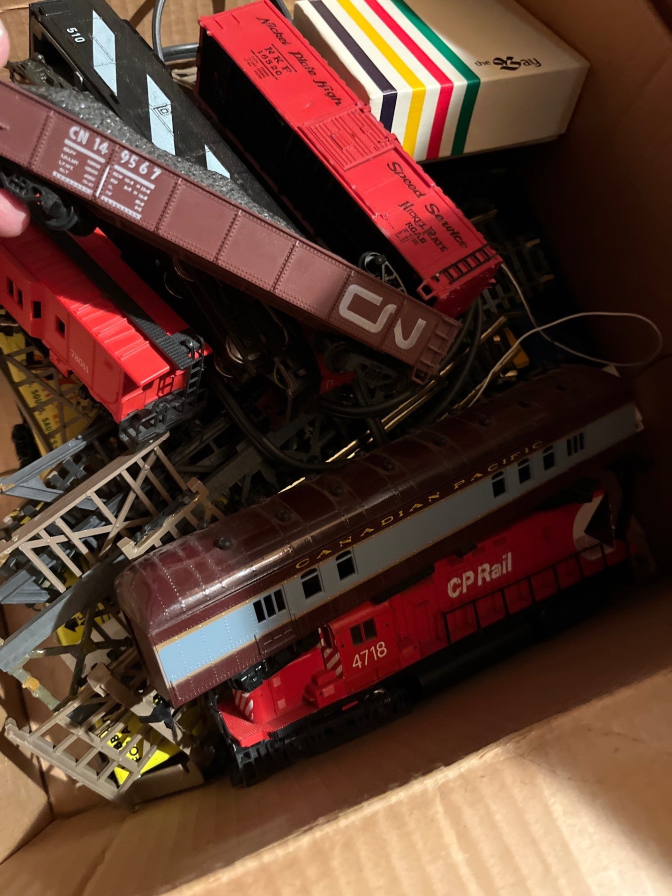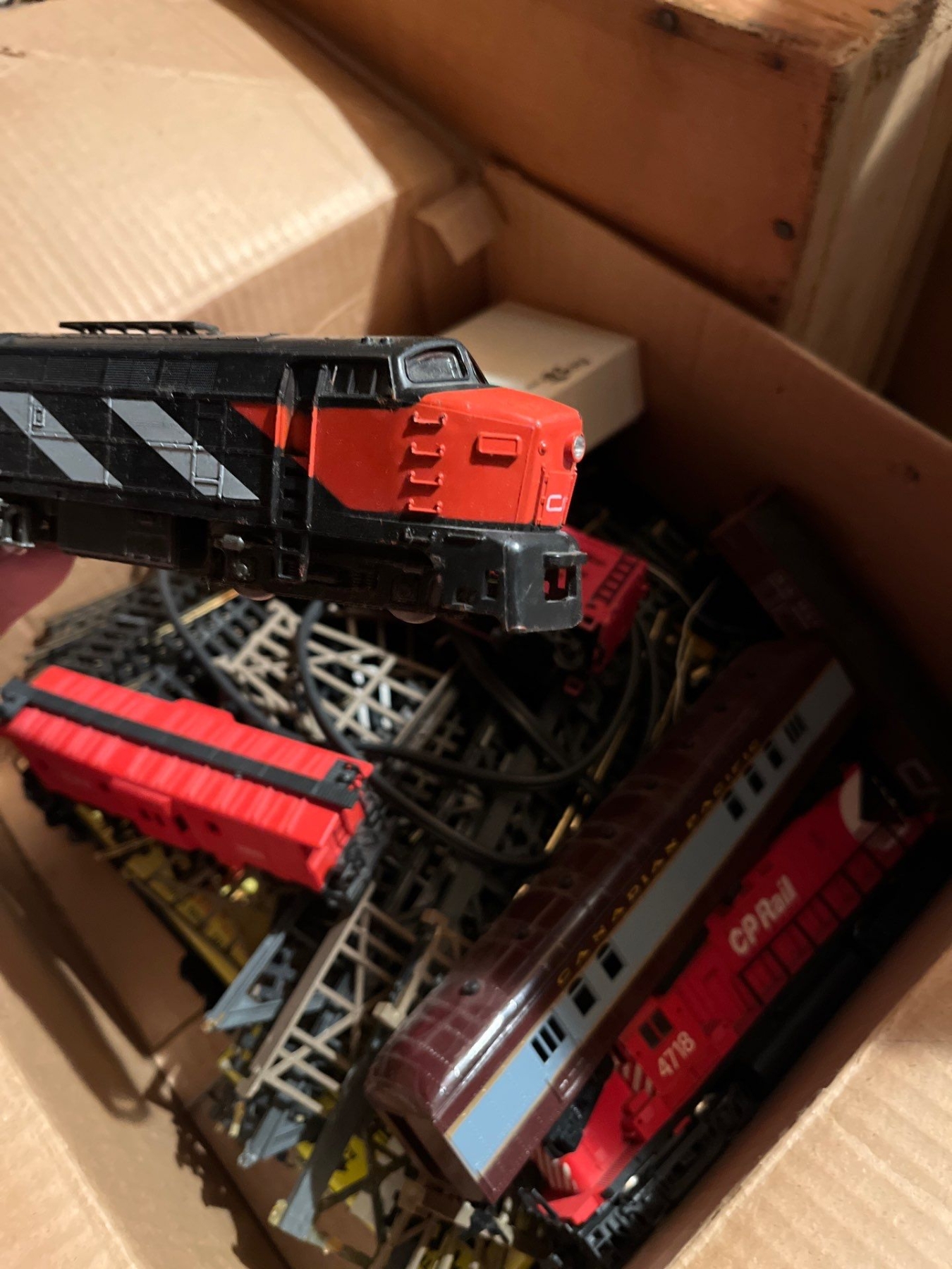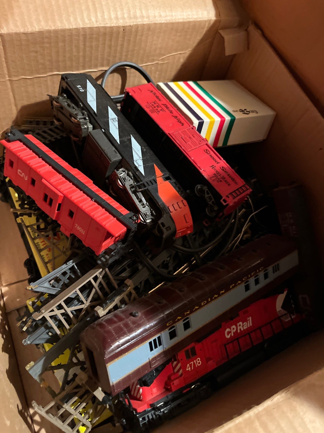 C P Rail vintage train set with track and attachments made in Italy CP rail carts.