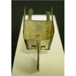 Cracker Jack wheelbarrow. Marked on both sides. Pressed tin with tabbed assembly. Size is 2.25". Condition: Very good. Retains some of its original flashing.