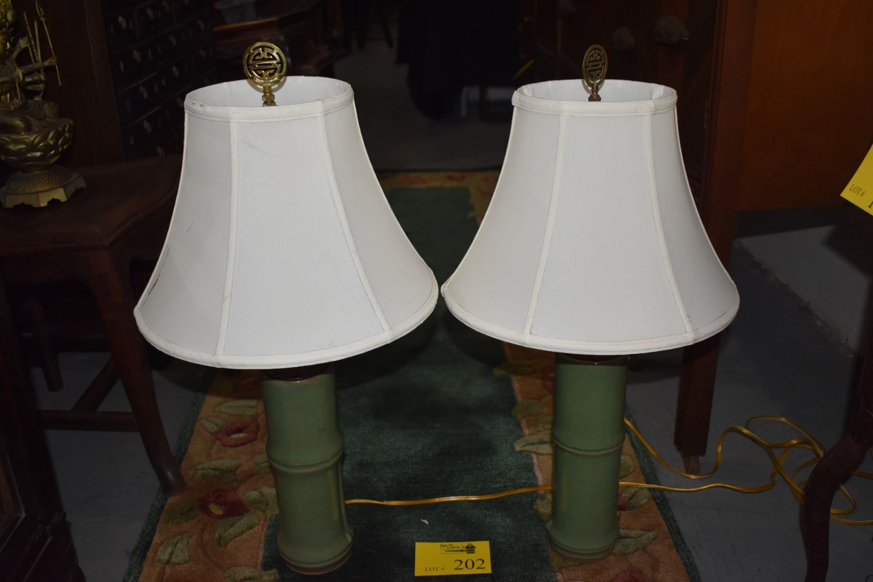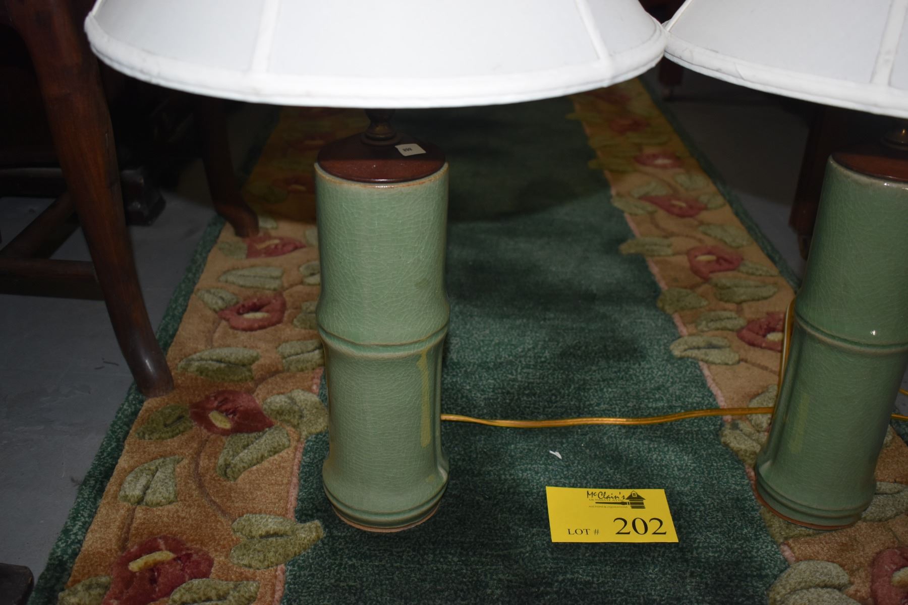 CRACKLE GREEN CELADON TABLE LAMPS (PAIR)