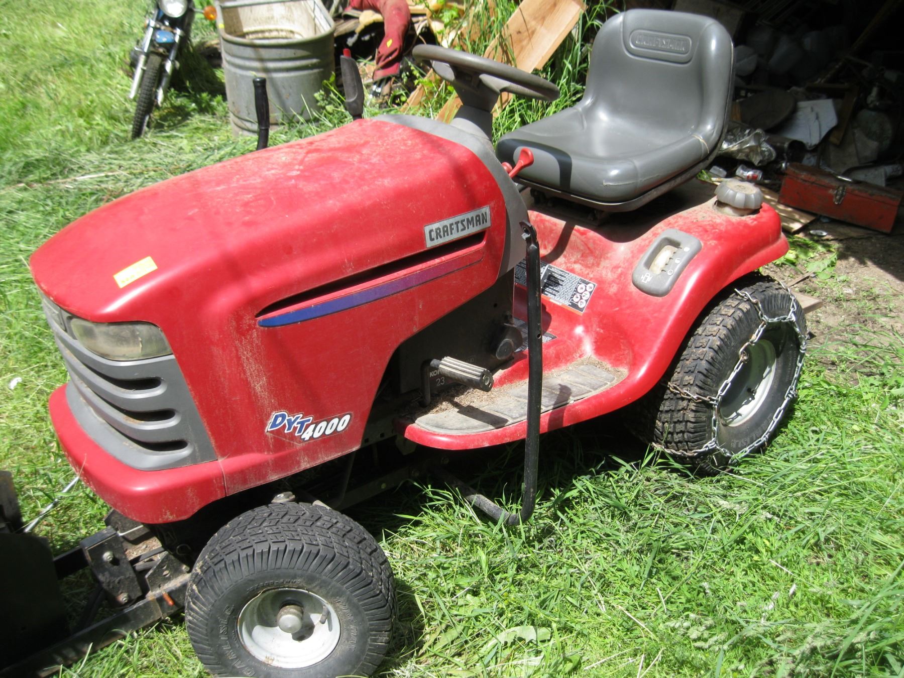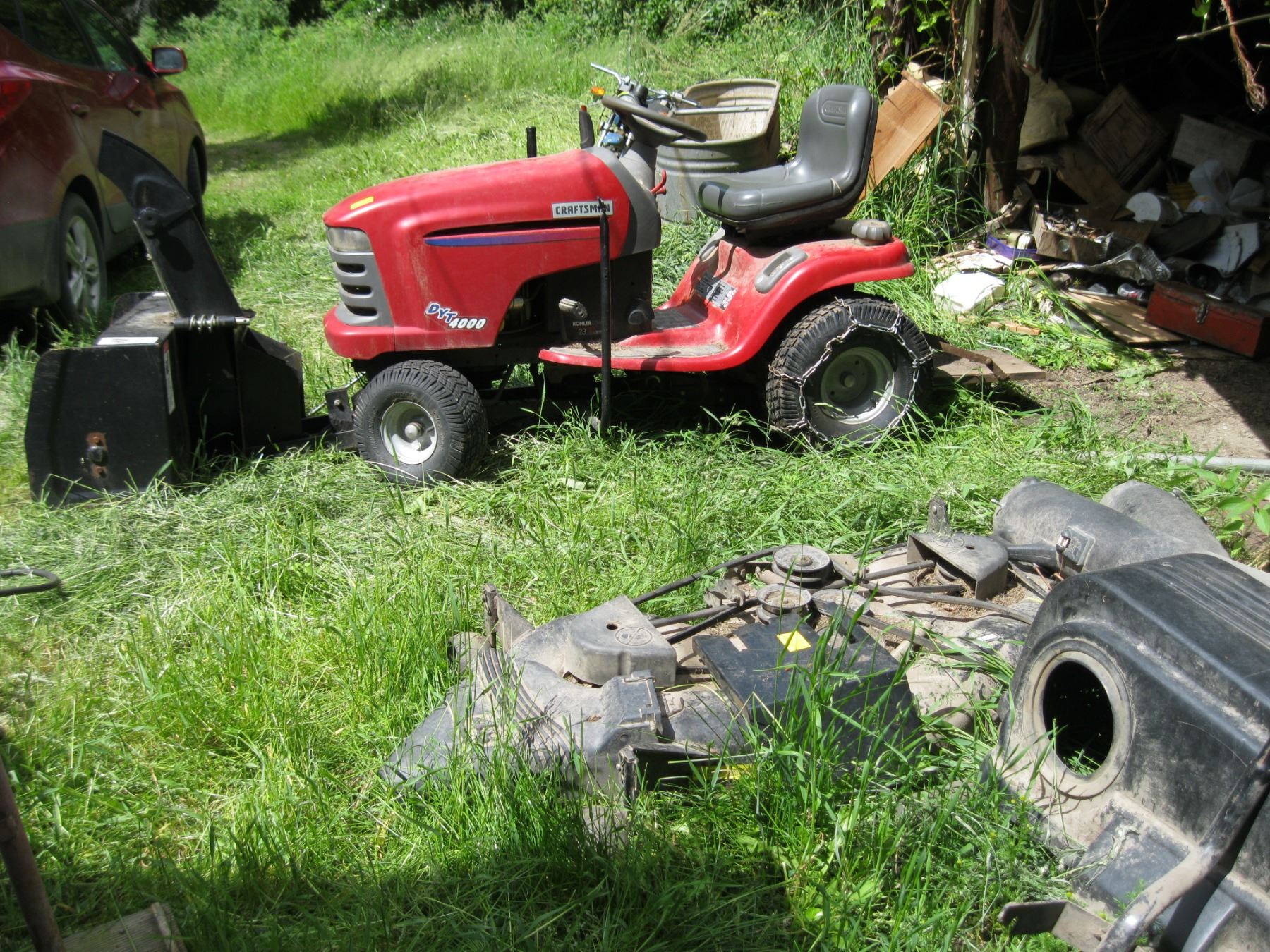 CRAFTSMAN DYT4000 RIDE-ON MOWER (256 HOURS) W/SNOW BLOWER ATTACHMENT & ACCESSORIES