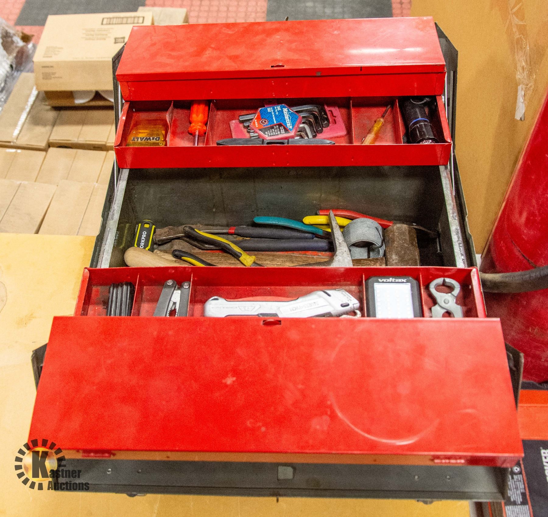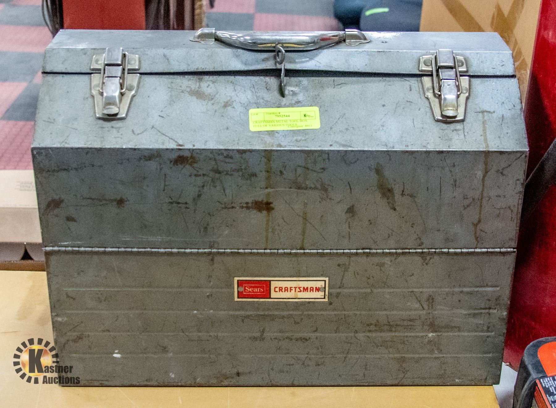 CRAFTSMAN METAL TOOL BOX FULL OF VARIOUS TOOLS
