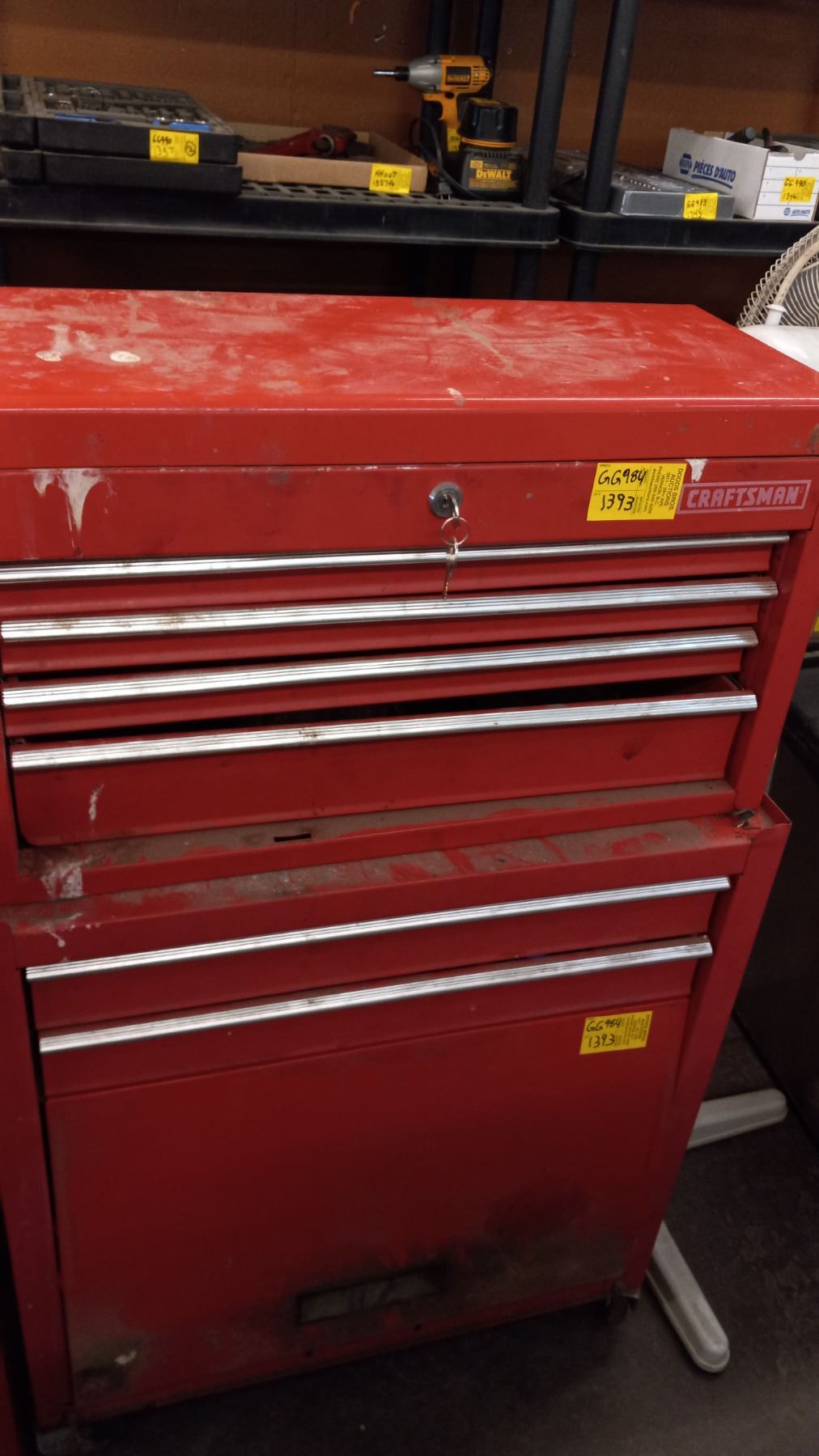 CRAFTSMAN UPPER 4 DRAWER TOOLBOX & A LOWER ROLLING TOOLCHEST W/CONTENTS