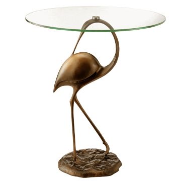 CRANE SIDE TABLE - 26"H 22"W 22"D - ALUMINUM & GLASS