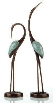 CRANE SONG BRONZE SCULPTURE - 20"H & 16"H -5"W 3.5 "D - GREAT ATTENTION TO DETAIL - BEAUTIFUL FINISH - LOST WAX CAST
