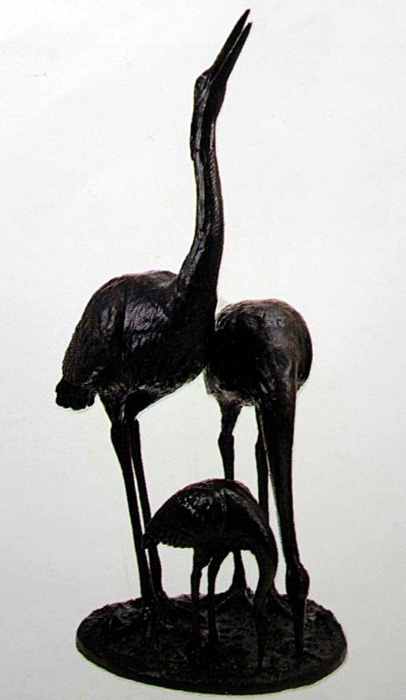 "CRANES" BRONZE SCULPTURE - AFTER MOIGNIEZ - MUSEUM BROWN FINISH - MOUNTED ON A FINE ITALIAN MARBLE BASE - BEAUTIFULLY DETAILED - 56"H X 37"W - LOST WAX CAST BRONZE