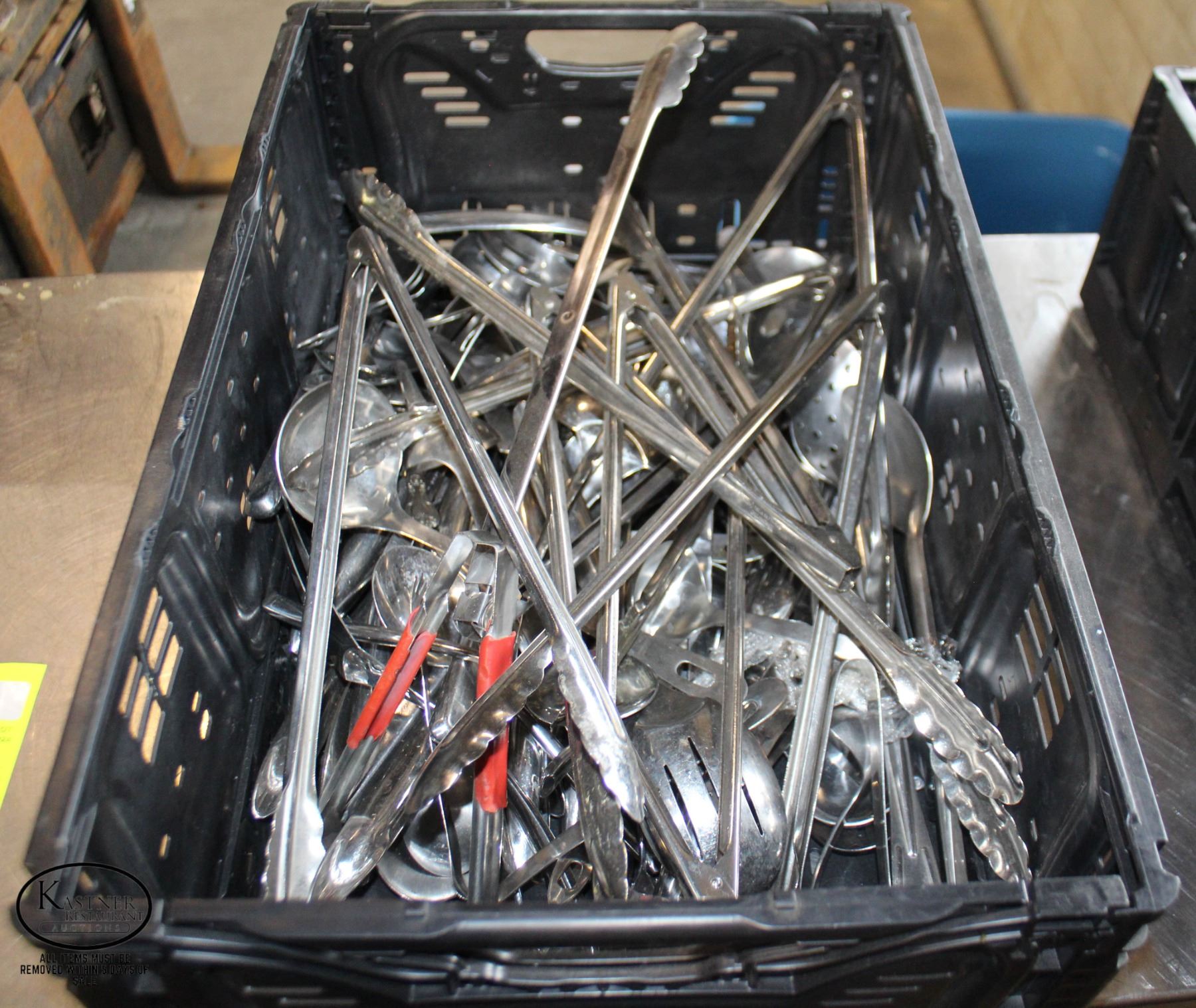 TONGS, SERVING SPOONS, SERVING FORKS, LADLES, AND MORE **ALL ITEMS MUST BE REMOVED BY 4:00PM, JULY 21ST, 2023. ALL ITEMS REMAINING AFTER 4:00PM, JULY 21, 2023 WILL BE CONSIDERED FORFEITED WITH NO REFUNDS TO THE BUYER WHATSOEVER. ALL ITEMS IN THIS AUCTION ARE SOLD IN UNTESTED CONDITION, DUE TO THE NATURE OF ONSITE AUCTIONS, WE ARE UNABLE TO TEST ITEMS PRIOR TO THE AUCTION. ABSOLUTELY NO REFUNDS WILL BE CONSIDERED FOR THIS AUCTION UNDER ANY CIRCUMSTANCE. WE RECOMEND TAKING ADVANTAGE OF VIEWING ON JULY 16TH, FROM 10:00AM UNTIL 4:00PM. PICK-UP IS AVAILABLE FROM JULY 18TH, UNTIL JULY 21ST, 10:00AM TO 4:00PM.