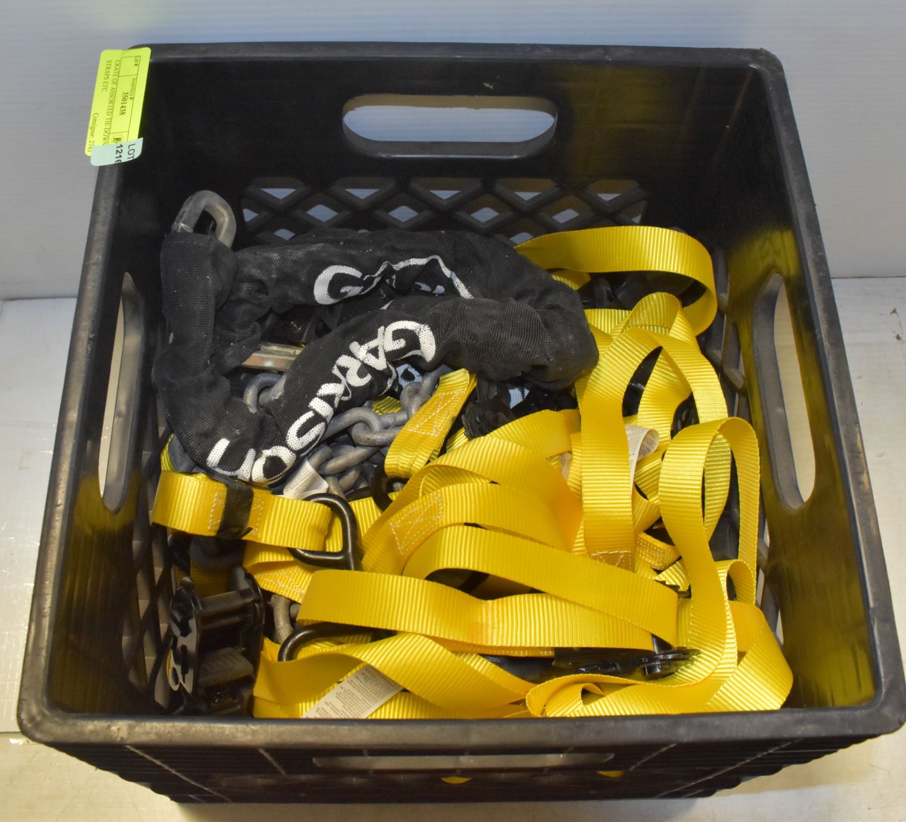 CRATE OF ASSORTED TIE DOWN STRAPS ETC.