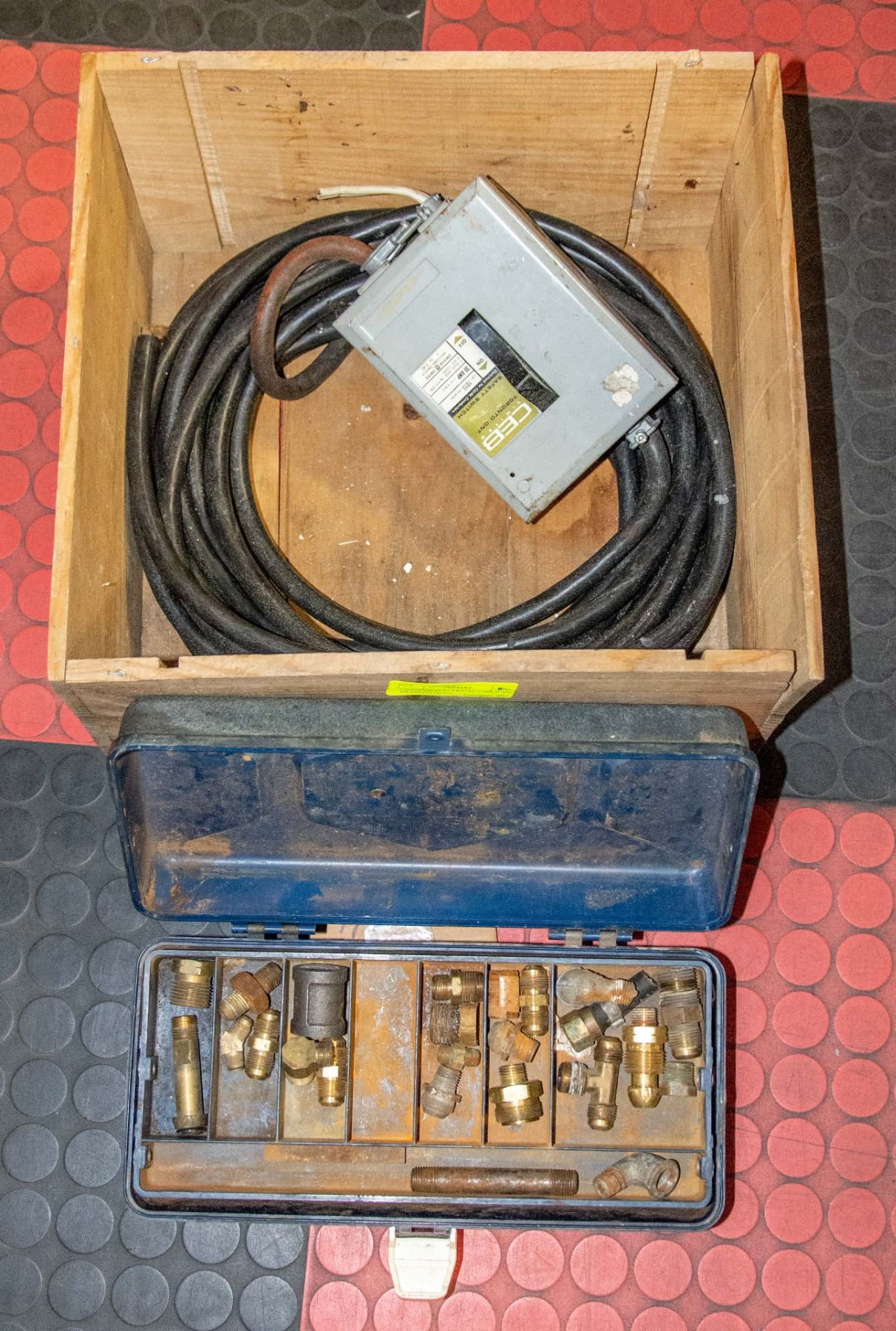 CRATE OF ELECTRICAL CABLE AND BRASS FITTINGS
