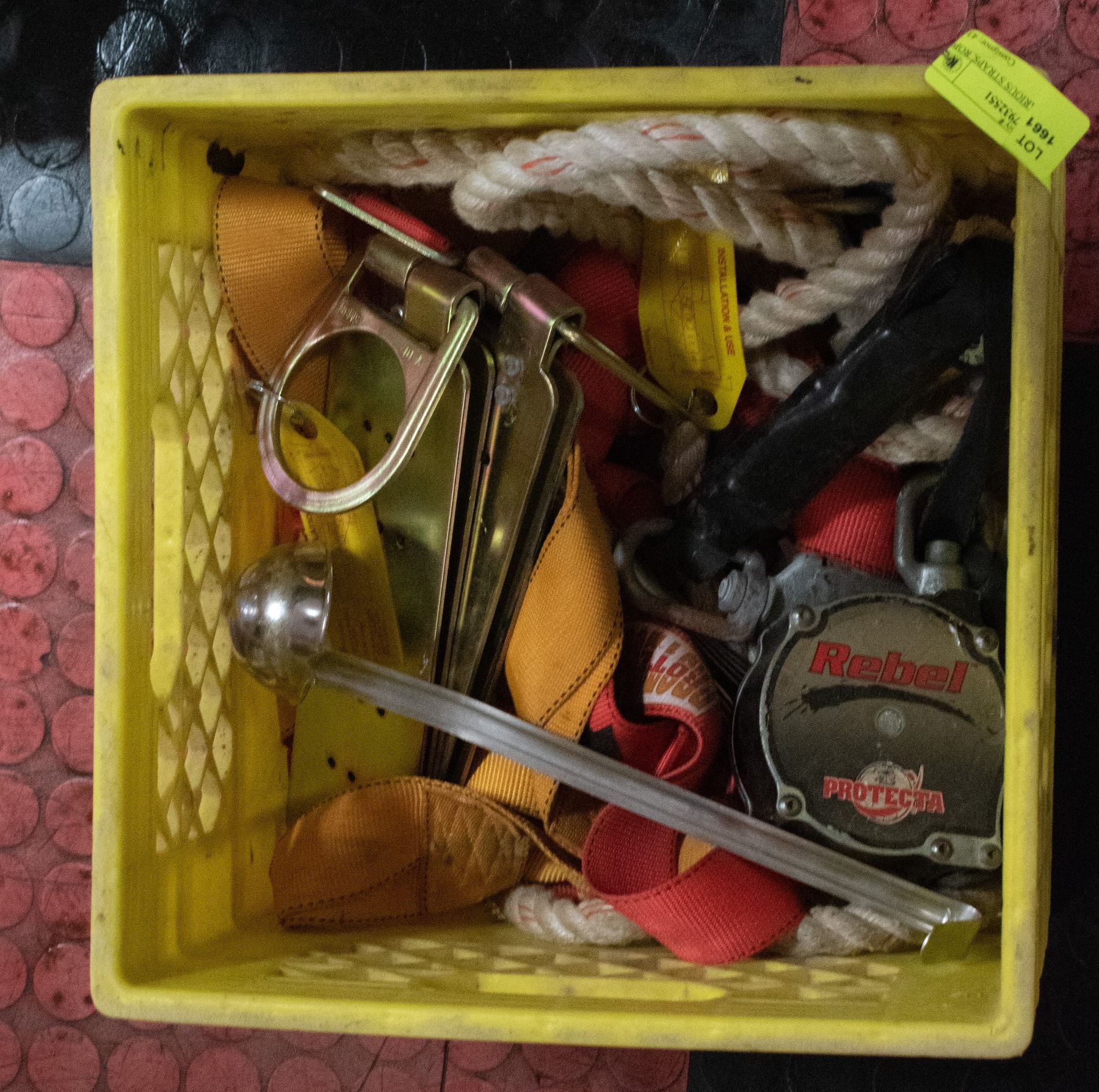 CRATE OF VARIOUS STRAPS, ROPES AND MORE