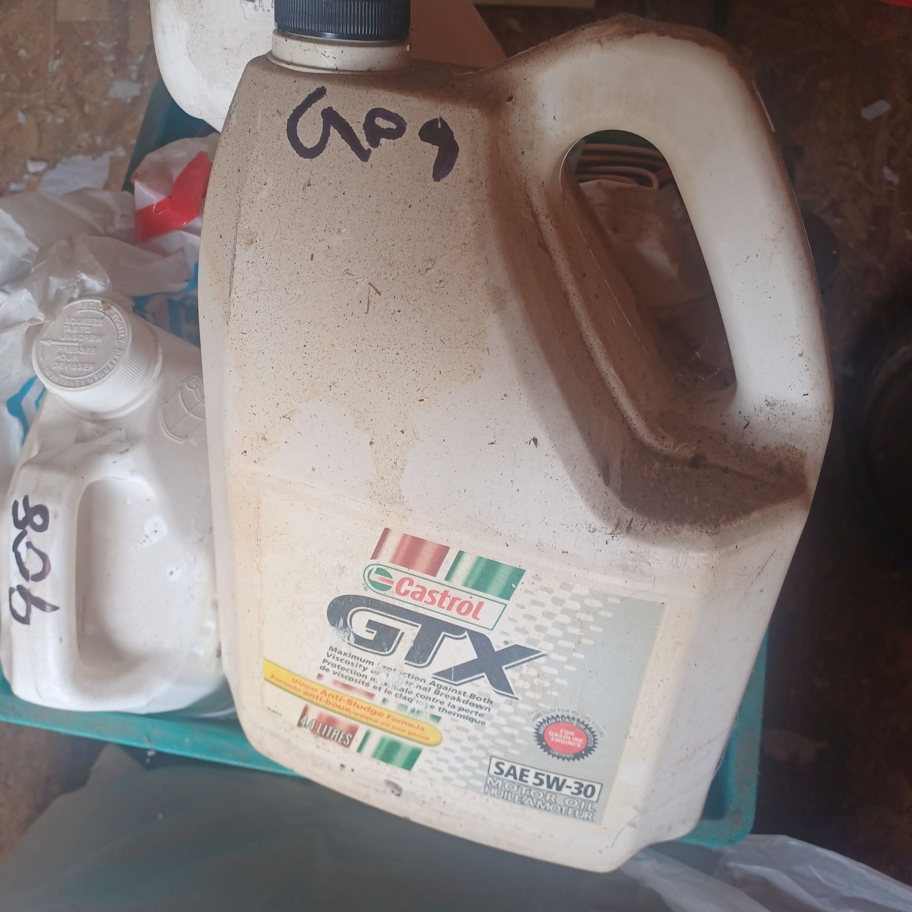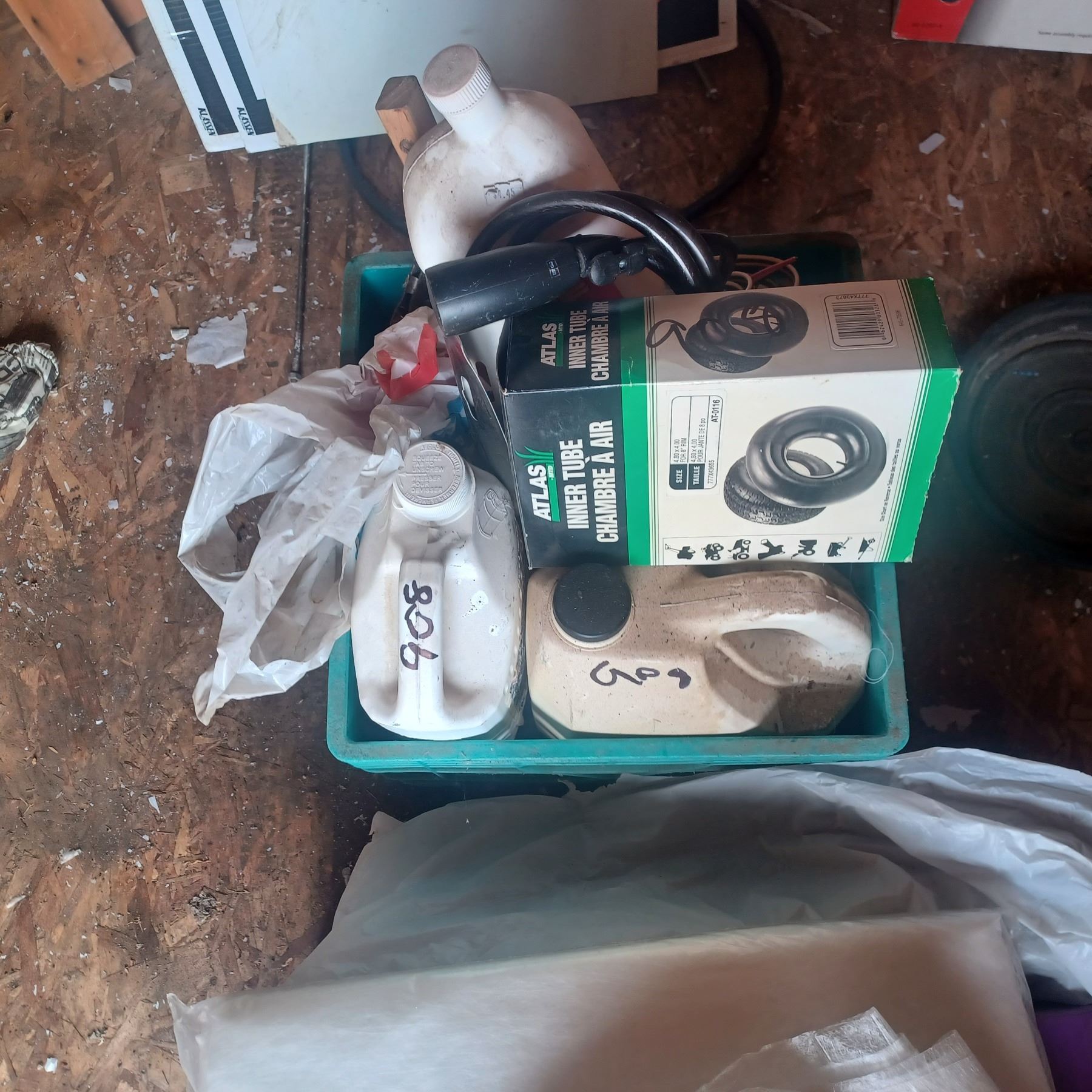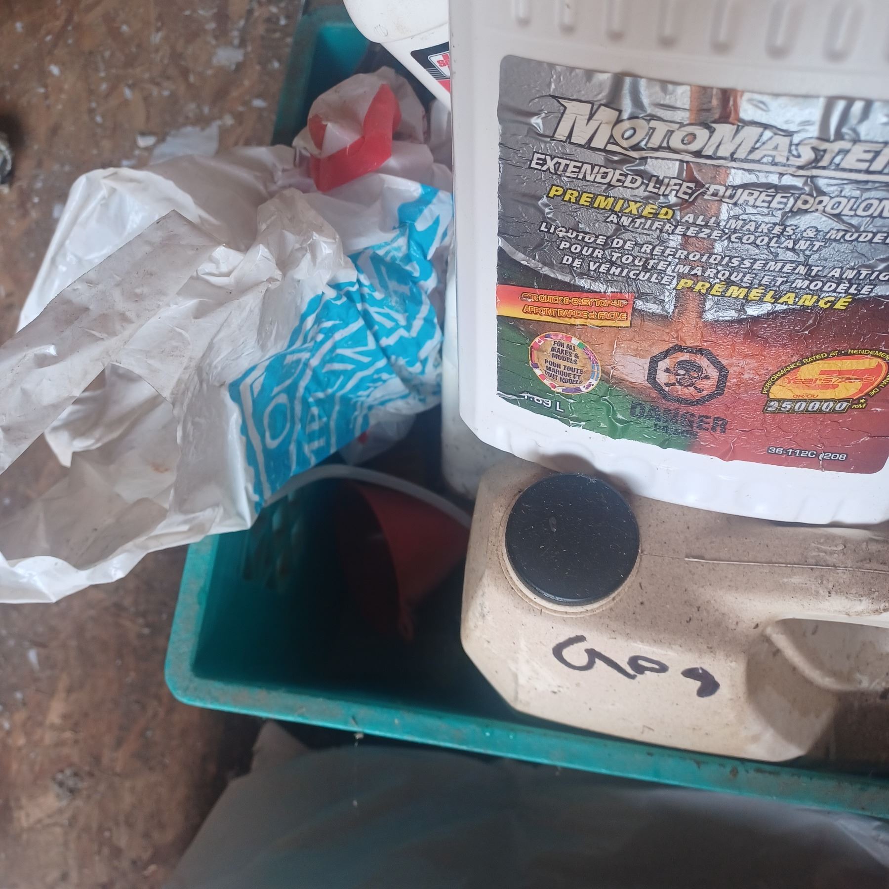 CRATE WITH AUTOMOTIVE SUPPLIES INCL 4 LITERS OF OIL AND ANTI FREEZE