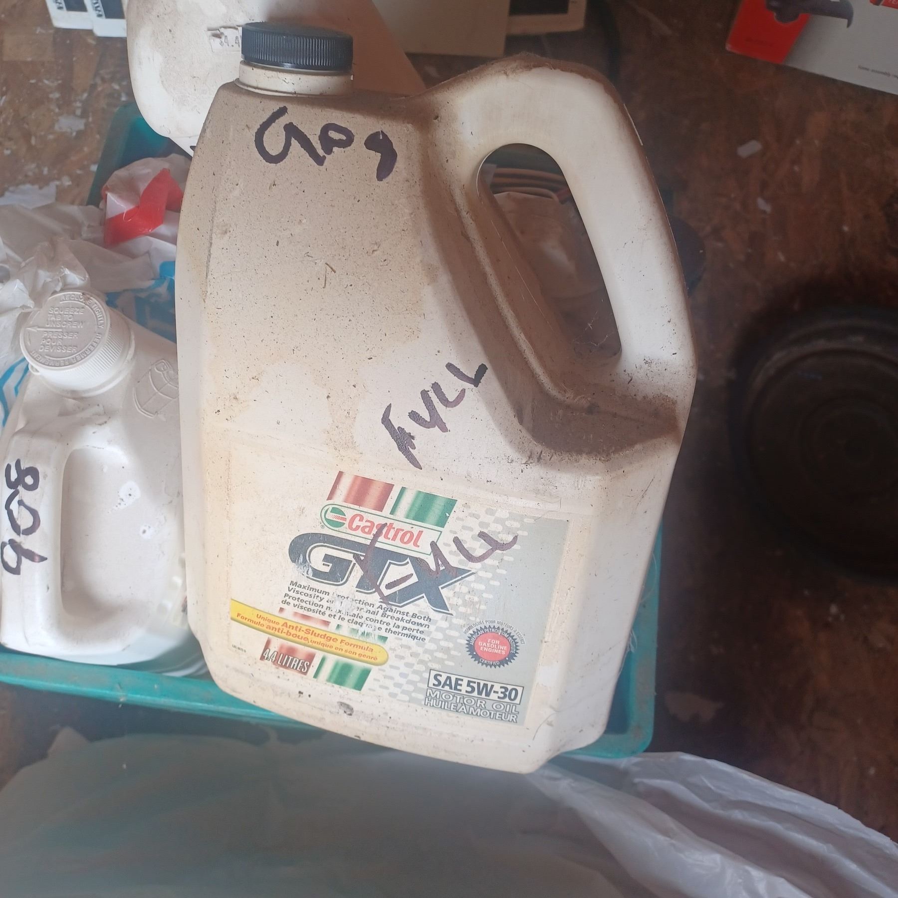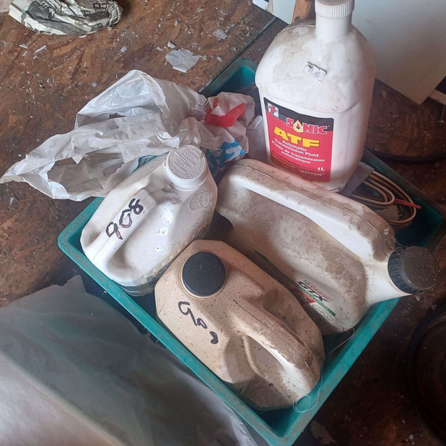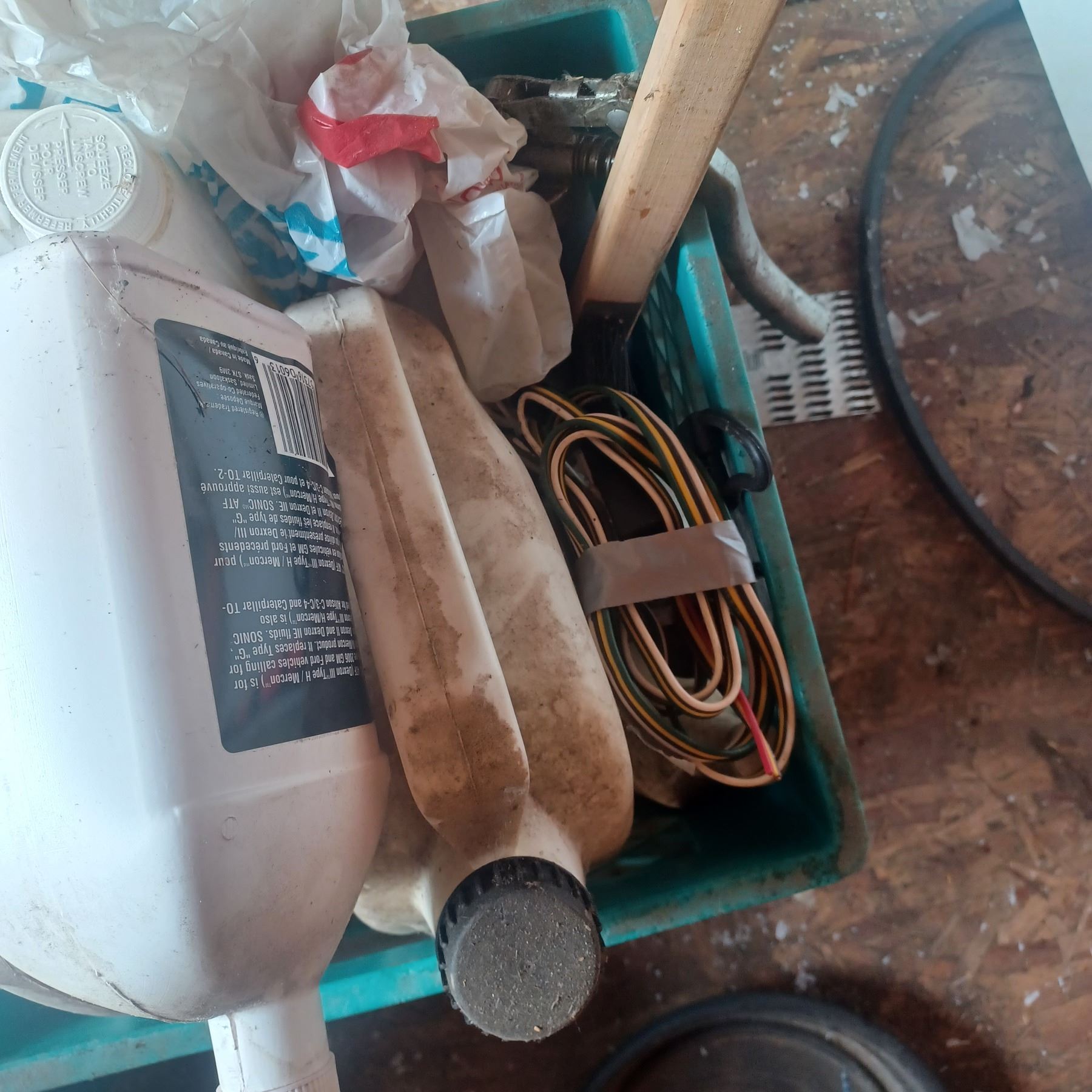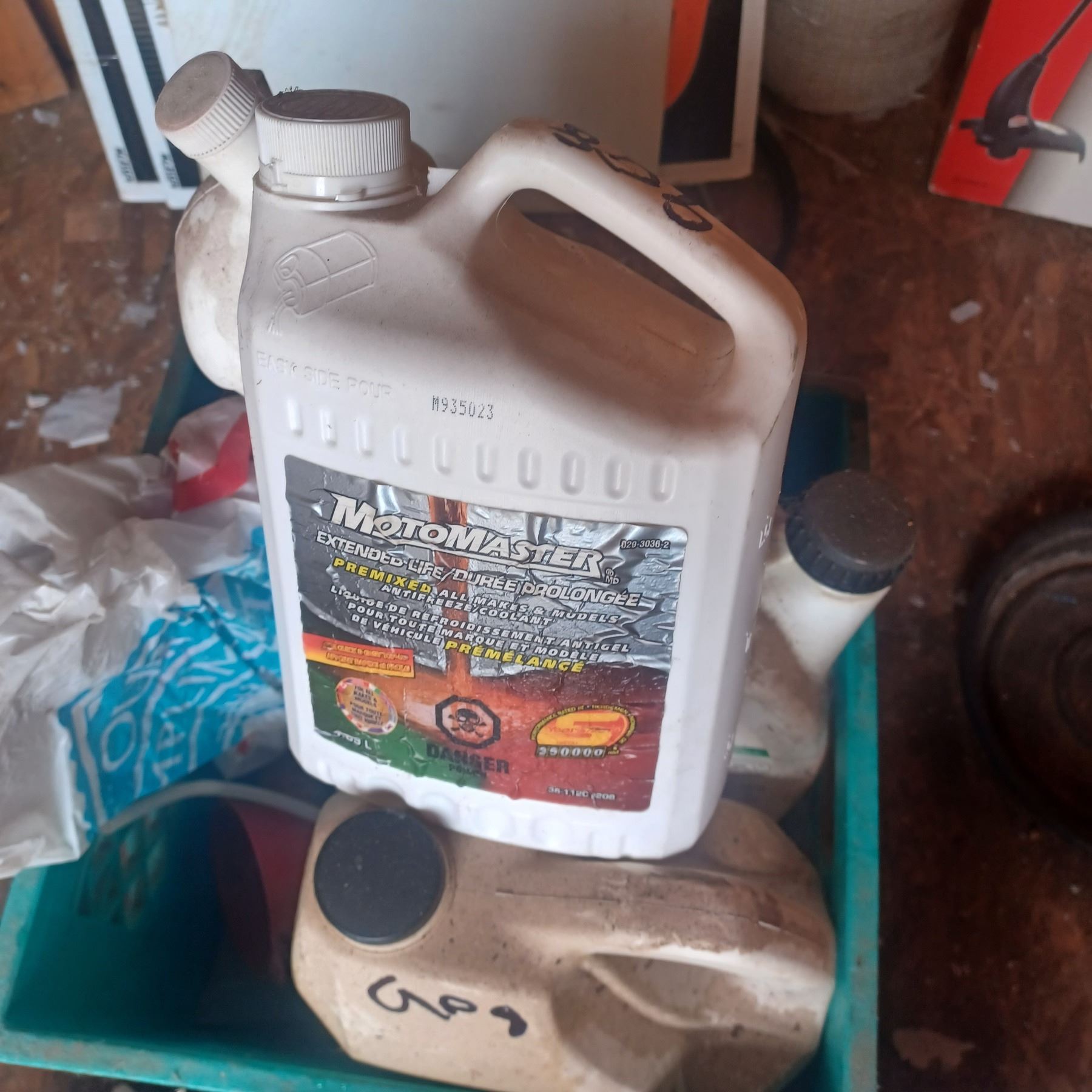 CRATE WITH AUTOMOTIVE SUPPLIES INCL 4 LITERS OF OIL AND ANTI FREEZE