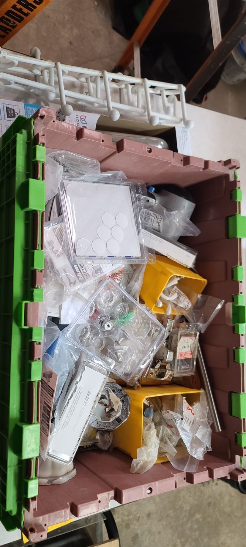 CRATE WITH KITCHEN AND BATH SUPPLIES