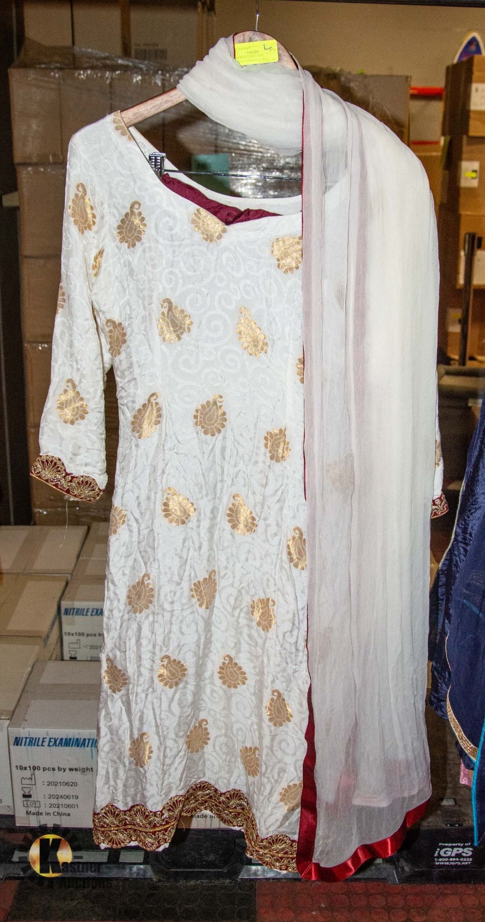KAMEEZ PANT DRESS SUIT - SCARF WITH BURGUNDY PANTS - PARTY, WEDDING, RECEPTION CLOTHS - LADIES SIZE LARGE **ALL ITEMS MUST BE REMOVED BY 5PM SATURDAY, DECEMBER 7TH 2024. ALL REMAINING ITEMS WILL BE SUBJECT TO A $6.00 PER DAY STORAGE CHARGE. ANY ITEMS REMAINING AFTER MONDAY, DECEMBER 23RD 2024 WILL BE CONSIDERED FORFEITED. NO REFUNDS WILL BE ISSUED FOR FORFEITED ITEMS. TO SCHEDULE A PICK UP APPOINTMENT CLICK HERE