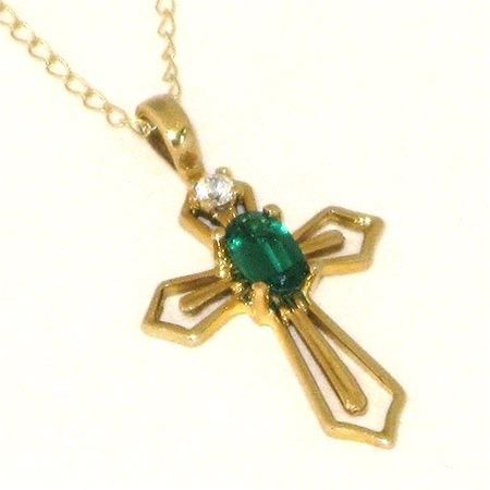 CREATED EMERALD 10KY CROSS PENDANT 21.5 X 12 MM
