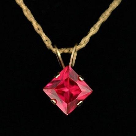 CREATED RUBY 10KY GOLD NECKLACE 11.5X7MM