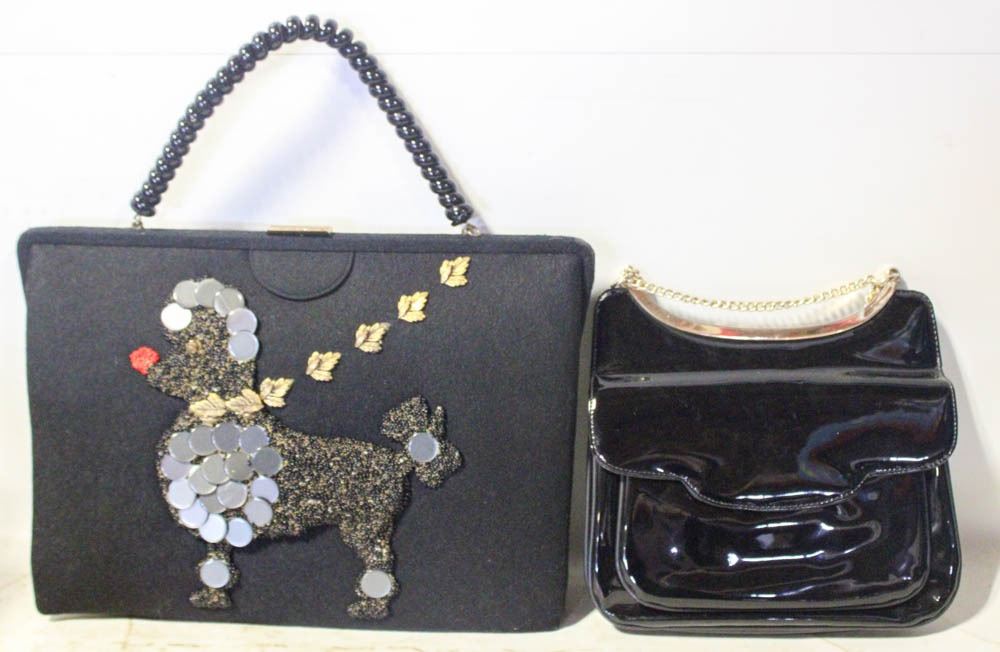CHAIN HANDLED HANDBAG + LA FRANCE POODLE HANDBAG (APPEARS TO BE BLACK WOOL)