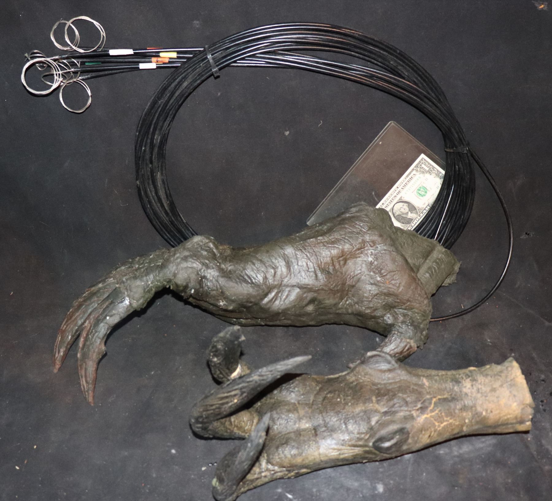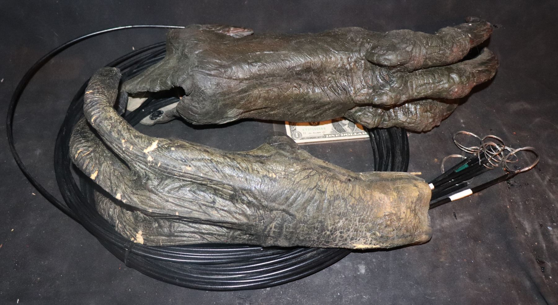 CREATURE ALIEN DEMON ANIMATRONIC CLAW HANDS ONE WITH CABLES ATTACHED