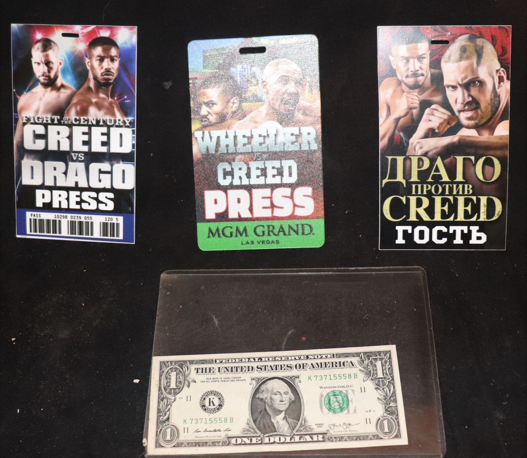 CREED SCREEN USED BOXING MATCH PRESS PASS BADGES LOT OF 3!