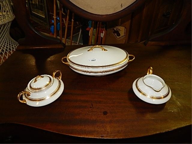 CRESTON CREAM & SUGAR -GOLD TRIM SERVING BOWL, 18K GOLD = 3 PC TOTAL