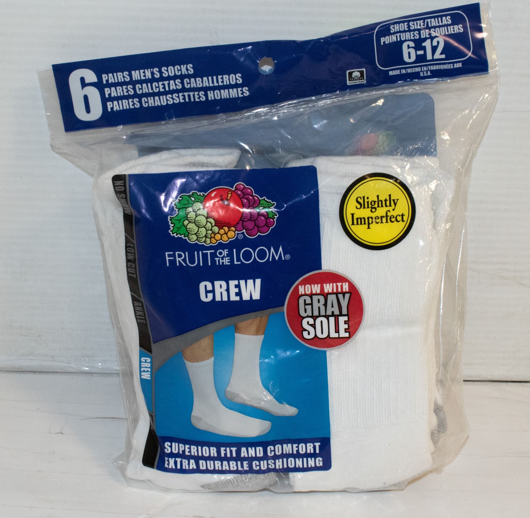 CREW SOCK WHITE SIZE 6-12 6-PACK