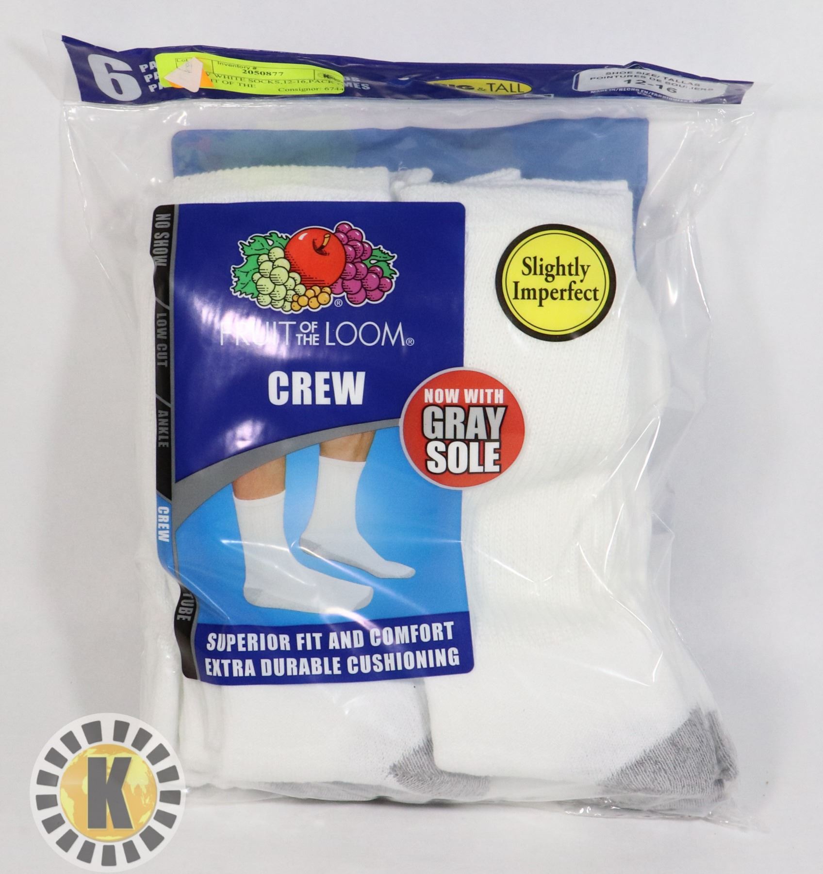 CREW WHITE SOCKS,12-16,PACK OF 6,FRUIT OF THE