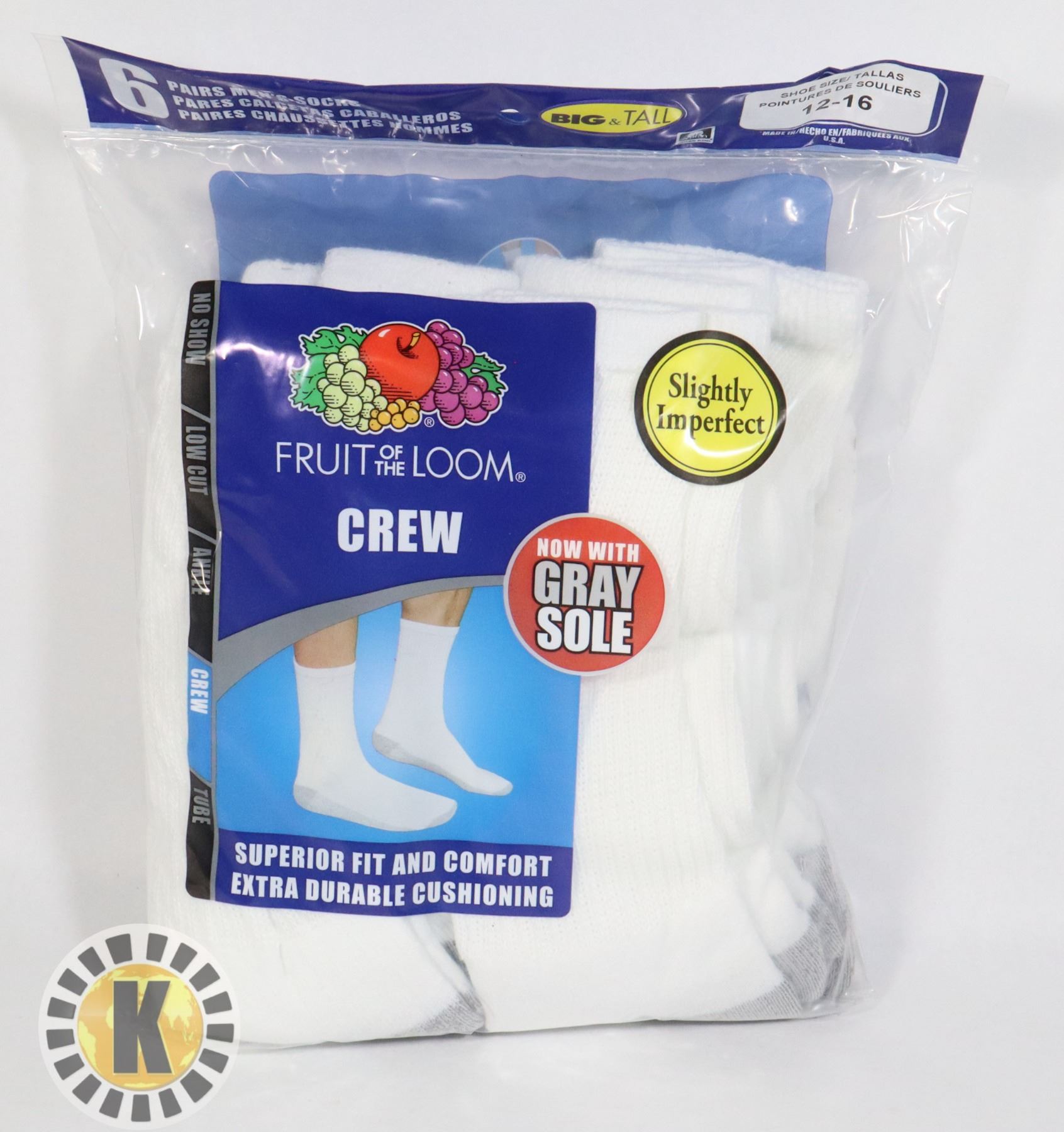 CREW WHITE SOCKS,12-16,PACK OF 6,FRUIT OF THE