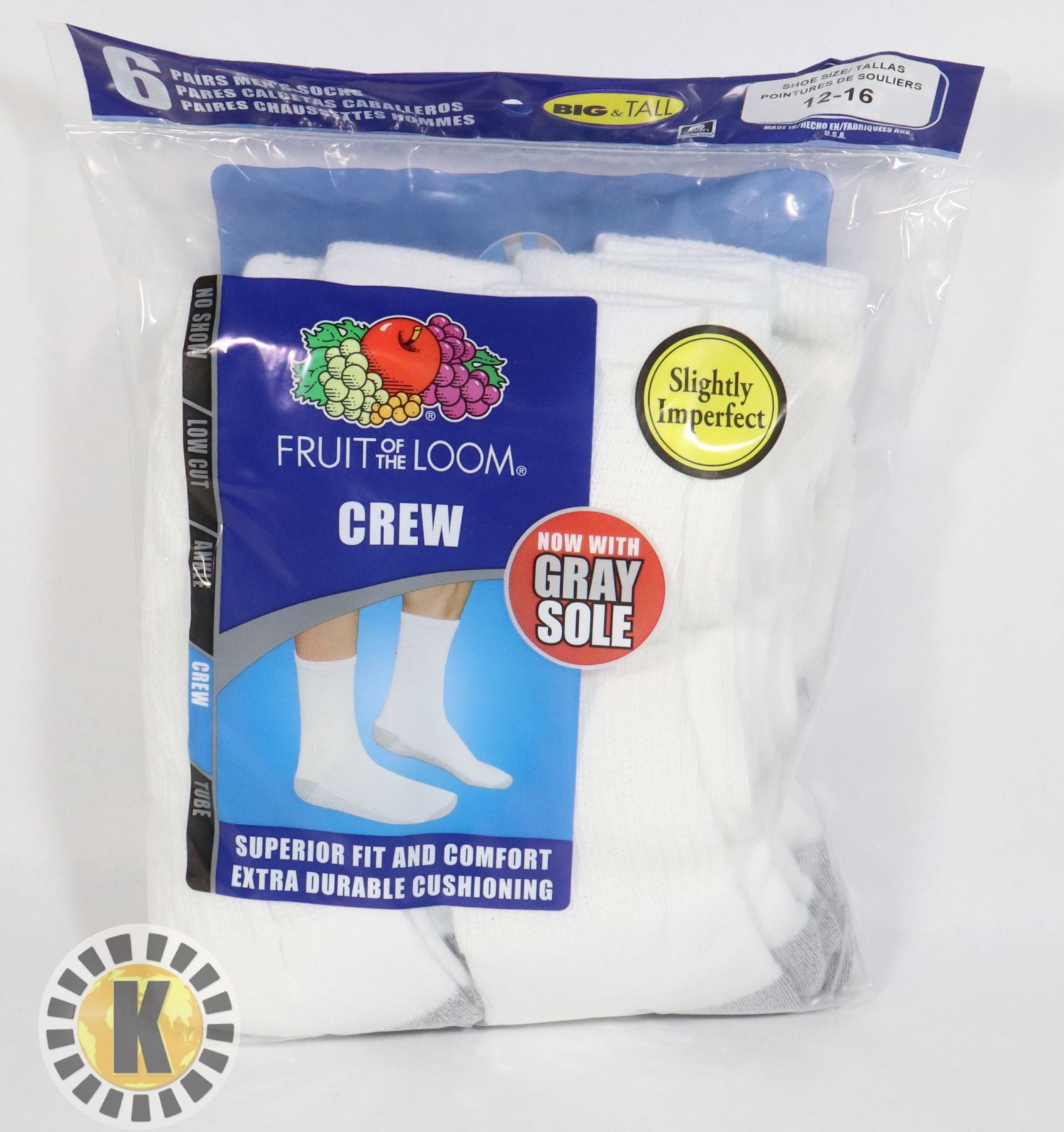 CREW WHITE SOCKS,12-16,PACK OF 6,FRUIT OF THE