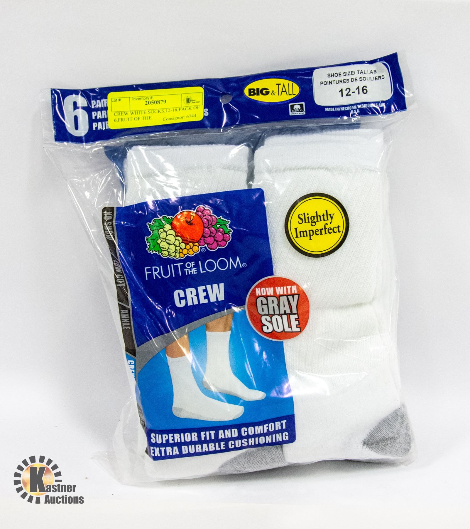 CREW WHITE SOCKS,12-16,PACK OF 6,FRUIT OF THE