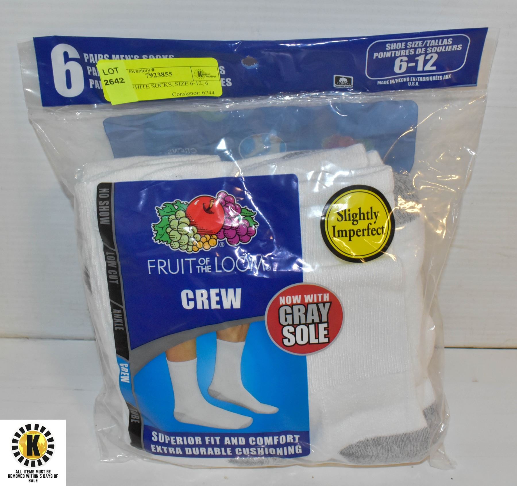 CREW WHITE SOCKS, SIZE 6-12, 6 PACK
