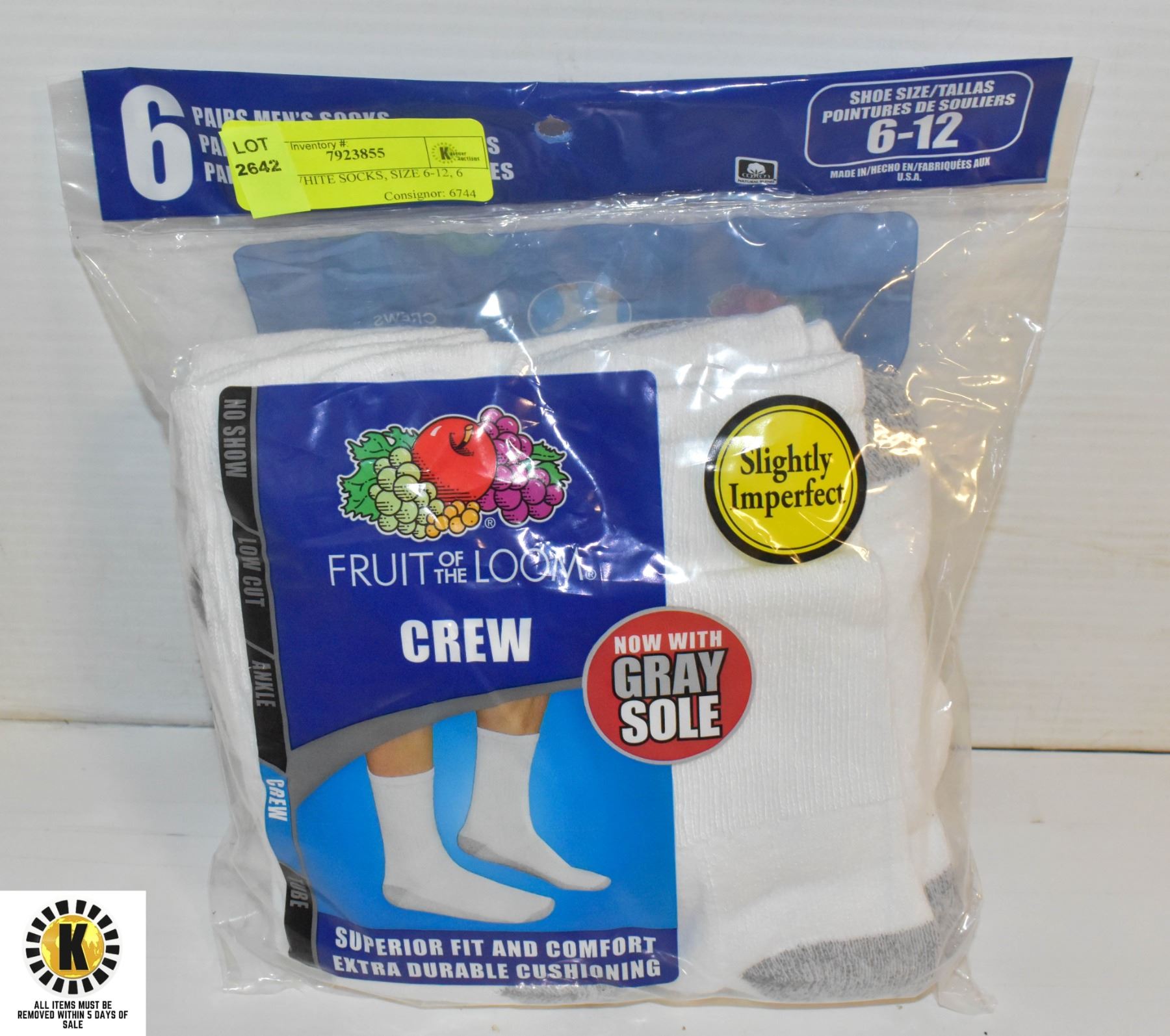 CREW WHITE SOCKS, SIZE 6-12, 6 PACK