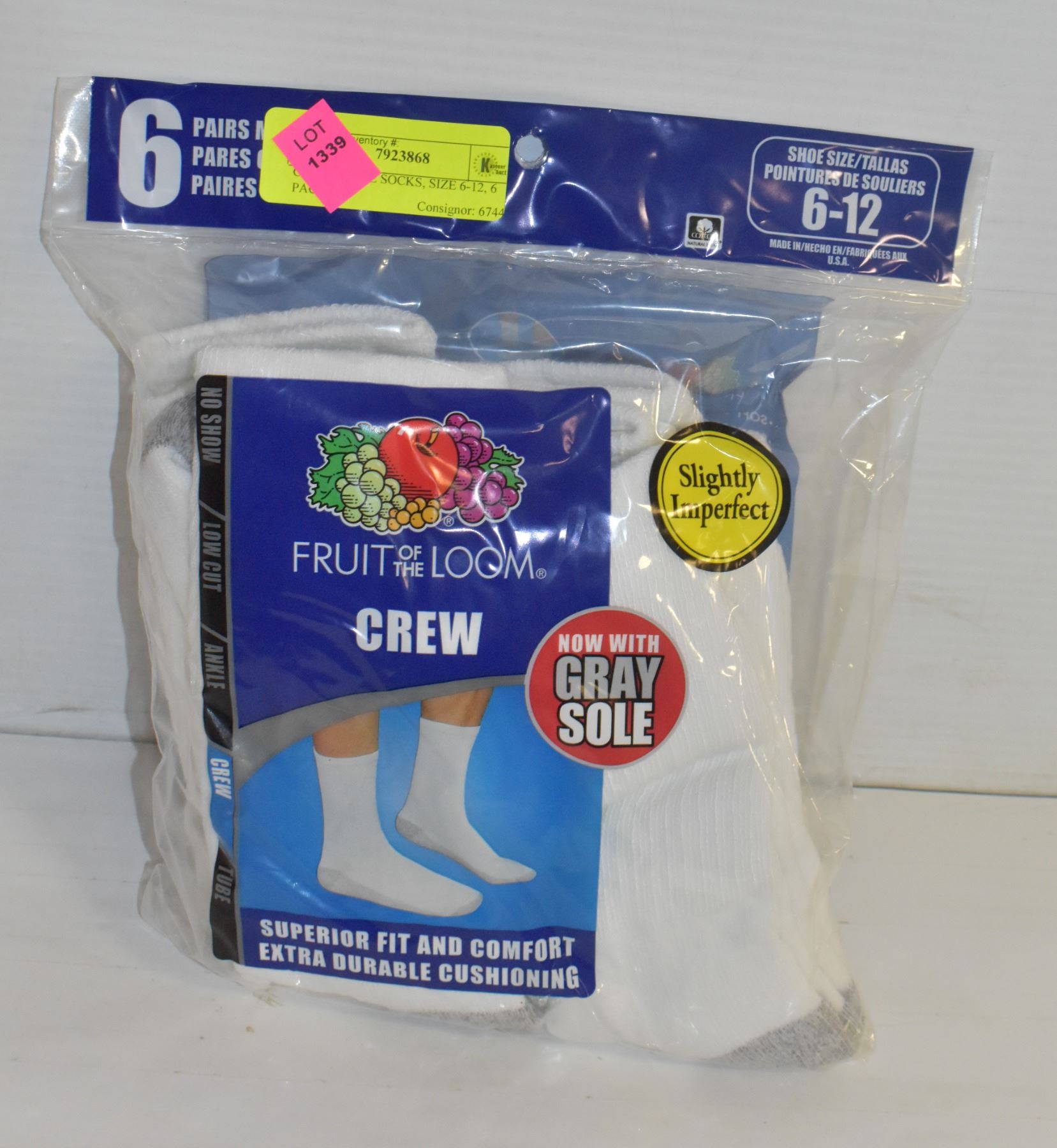 CREW WHITE SOCKS, SIZE 6-12, 6 PACK
