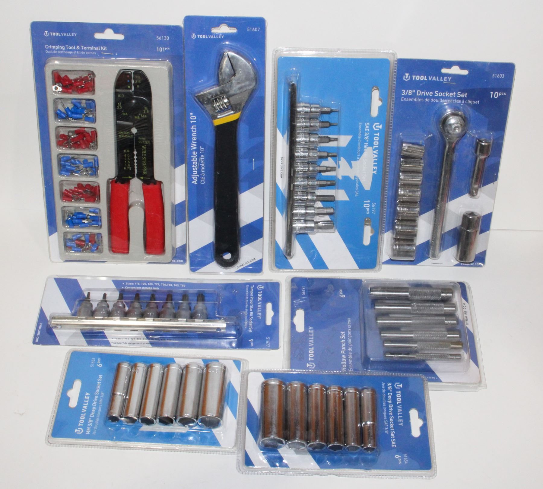 SAE HEX BIT SET, 3/8" DRIVE SOCKET SET, HOLLOW PUNCH SET, AND MORE