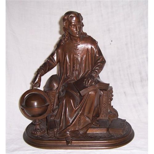 OLD SCULPTURE BRONZE COLUMBUS- CRISTOFORO COLOMBO- SIGNED BY THE AUTHOR ADRIEN ETIENNE GAUDEZ (1845-1902) BORN IN LYON, FRANCE, HE STUDIED IN THE Ecole des Beaux Arts de NEUILLY sur SEINE IN 1862. His teacher was Francois Jouffroy. He won the gold medal in the Exposition Universelle 1889-1890. Excellent manufacture and care on details, see the maps and the shoe in pictures. It is signed Gaudez, and it's a museum piece. Bid with confidence. Professional shippings and wrapping.