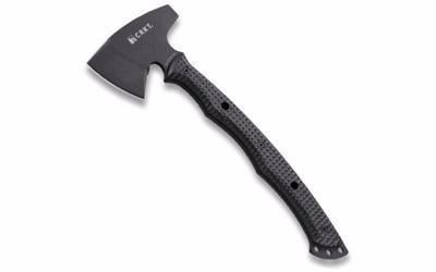Columbia River Knife & Tool, Chogan T-Hawk 14" Axe, Plain Edge, Black Finish, SK5 Carbon Steel, 54-55 Blade HRC, Black Kydex Sheath Manufacturer: Columbia River Knife & Tool Model: Chogan T-Hawk Type: Axe Finish/Color: Black SK5 Carbon Steel, 54-55 HRC Edge: Plain Axe Edge Accessories: Sheath Size: 14" Overall Frame/Material: Nylon Manufacturer Part #: 2720 Becca