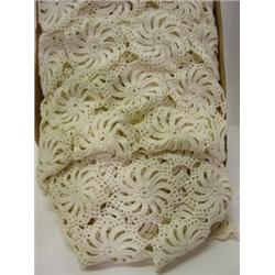 CROCHETED BEDSPREAD. Some slight staining is visible.