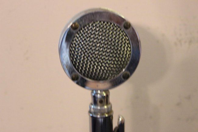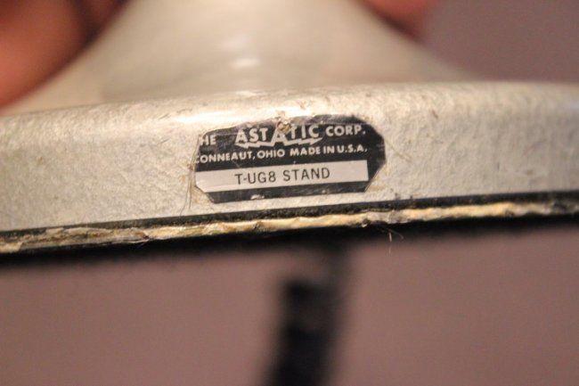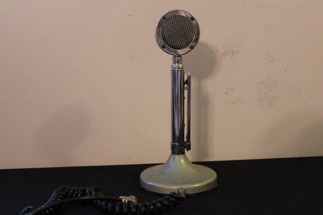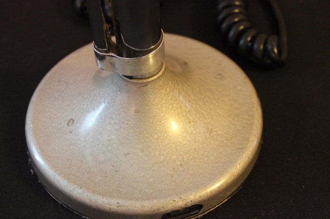 CROME PLATED MICROPHONE ON GRAY TABLE BASE BY ASTATIC - TUG8 STAND - 12.5"