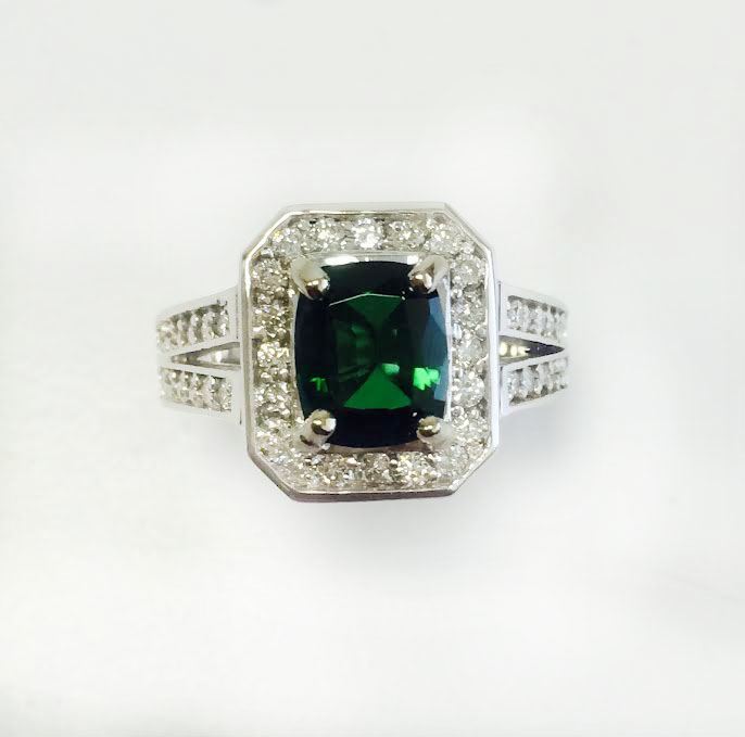 CROME TOURMALINE 1.43CT, 14K W/ G RING 7.46GRAM / DIAMOND RD 0.63CT