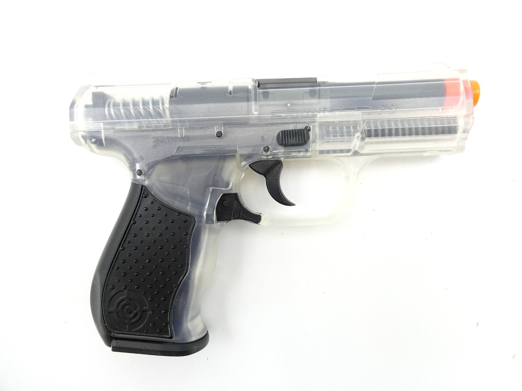 (1) BB (6MM CAL.), SPRING POWERED, POLYMER CONSTRUCTION, MARKED "STINGER P9", ETC., NO COCKING ISSUES, NOT FULLY TESTED. SEE PHOTOS.
