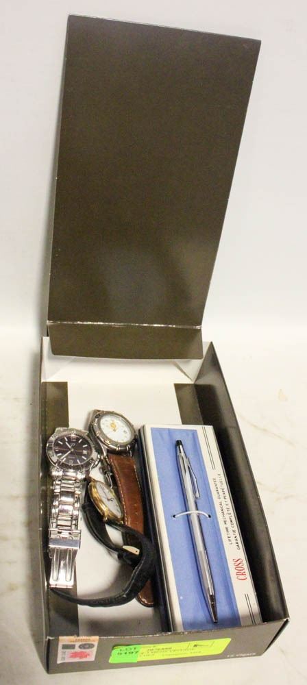 CROSS PEN & 3 MENS VINTAGE WRIST WATCHES