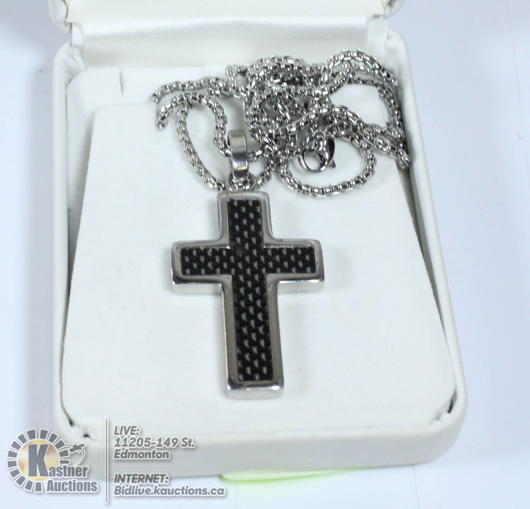 CROSS PENDANT AND CHAIN STAINLESS STEEL MARKED