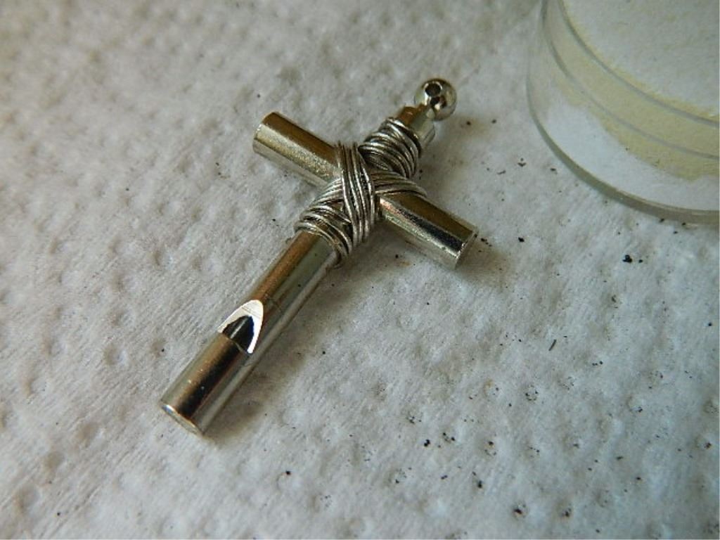 CROSS PENDANT - WHISTLE - WORKING - NON-FEROUS - 2" TALL