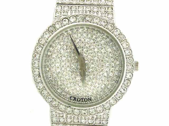 This is Croton Balliamo Watch (CN207242) for Ladies. The watch is water resistant to 1 ATM (33 feet). It has a Push/Pull Crown with a Brass/Rhodium/Silverton Round Case. The band's width is 17.3 mm (7 1/2 inches). The clasp is a jewelry clasp and the bezel is stationary. The crystal is mineral with a Brass/Czech stones pave Dial and Silvertone Dial Color. Movement is Quartz with a Miyota IL22 Movement Caliber.