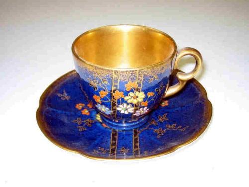 CROWN DEVON BLUE FLORAL CUP & SAUCER SET