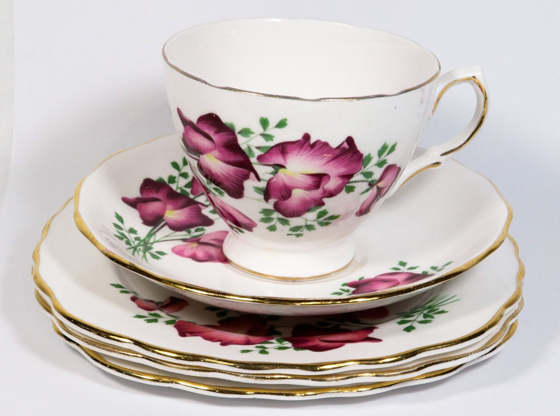 CROWN ROYAL d 45 2 TEA CUP, SAUCER & 3 SMALL