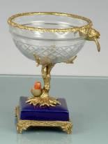 FINE ITALIAN CRYSTAL - DETACHABLE BOWL - BRASS BIRD - STEM AND TRIMS -HAND PAINTED PORCELAIN BIRD AND BASE - 9LX8WX11H